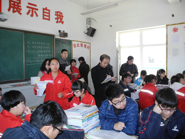讓我校老師們感受最大的就是靖邊的課堂教學(xué)改革活動。這里的課堂真正是學(xué)生飛揚(yáng)激情、展現(xiàn)才華的舞臺。合作探究討論的場面熱烈而有序,學(xué)生學(xué)習(xí)過程中的問題意識很強(qiáng);特別是學(xué)習(xí)小組的活動十分有效,充分加強(qiáng)了學(xué)生的參與意識、問題意識和合作意識,培養(yǎng)提高了他們的自學(xué)能力、思維能力、表達(dá)能力、合作能力和交際能力。教師在整個(gè)學(xué)習(xí)過程中,或組織引導(dǎo),或糾錯(cuò)補(bǔ)充,或總結(jié)升華,他們占用的時(shí)間少了,而發(fā)揮的作用卻沒有減弱。這里的高效課堂教學(xué)再不是一心謀高考,而是把提高學(xué)生綜合素質(zhì)作為最終目標(biāo)。