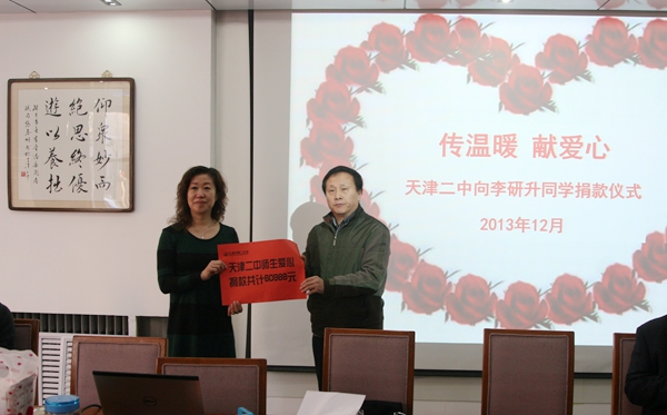 這次儀式的舉辦,既是要讓愛心收獲溫情,也是希望喚起更多人的關注和支持,我們真誠的希望李研升同學在二中師生的幫助中,在社會更加廣泛的關注中,盡快康復,重返校園!