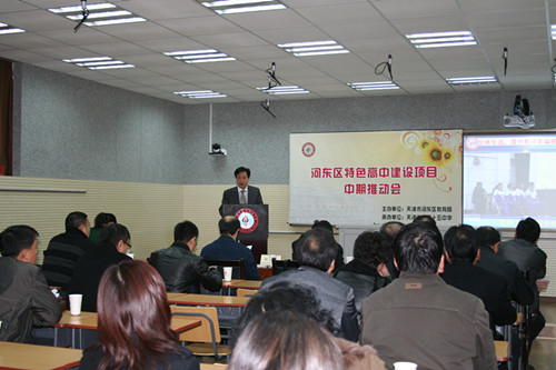 2013年11月25日下午,我校承辦了“河?xùn)|區(qū)特色高中建設(shè)項(xiàng)目中期推動(dòng)會(huì)”。天津市教育委員會(huì)中學(xué)處黃炎處長(zhǎng)、劉文利副處長(zhǎng)、河?xùn)|區(qū)教育局局長(zhǎng)鄭慶東同志、副局長(zhǎng)張俊鈞同志、河?xùn)|區(qū)各中學(xué)校長(zhǎng)、副校長(zhǎng)及天津電視臺(tái)、天津教育報(bào)媒體朋友等50多人參加了此次會(huì)議,區(qū)中教科陳影科長(zhǎng)主持會(huì)議。會(huì)議主要有三項(xiàng)議程,一是分組觀摩我校辦學(xué)特色,二是鄭若興校長(zhǎng)做幸福教育辦學(xué)特色專題報(bào)告,三是市、區(qū)領(lǐng)導(dǎo)對(duì)特色高中建設(shè)項(xiàng)目進(jìn)行指導(dǎo)并提出具體要求。
