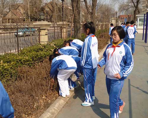 高中同學(xué)走出校門(mén),到鄰近社區(qū)開(kāi)展“低碳出行,文明送學(xué)”宣傳活動(dòng),并對(duì)社區(qū)環(huán)境進(jìn)行了清理。