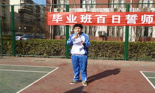 學(xué)生代表代表全體學(xué)生發(fā)言,表達(dá)了面對高考迎難而上、決不放棄的決心。