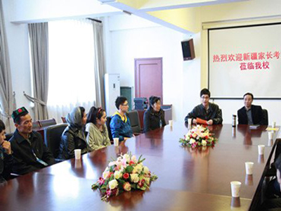 考察團(tuán)應(yīng)邀參加了“2014年新疆班寒假工作總結(jié)大會(huì)”,大會(huì)總結(jié)了新疆班寒假豐富多彩的活動(dòng)情況,得到了與會(huì)嘉賓的一致好評(píng)。努爾加依娜結(jié)合對(duì)母校的感恩情懷對(duì)學(xué)生進(jìn)行了教育發(fā)言。我校高二年級(jí)烏木提汗家長(zhǎng)代表訪問團(tuán)家長(zhǎng)對(duì)學(xué)生提出了希望。張寶華書記代表學(xué)校對(duì)考察團(tuán)的到來表示熱烈歡迎并講話;顒(dòng)結(jié)束后,在張寶華書記的親自帶領(lǐng)下,家訪團(tuán)參觀了我校新疆班宿舍、報(bào)告廳、閱覽室、清真食堂、專用教室等。充滿文化氣息的校園環(huán)境,設(shè)施先進(jìn)的報(bào)告廳,溫馨整潔的宿舍得到了家長(zhǎng)的贊賞。