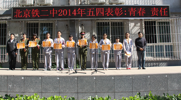 為了紀(jì)念“五四”運(yùn)動(dòng)95周年,表彰先進(jìn),樹立典型,2014年5月5日星期一,我校隆重舉行2014年“青春.責(zé)任”五四表彰儀式。
