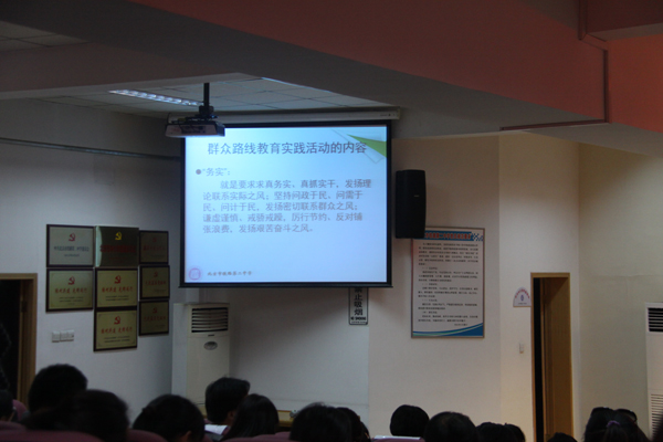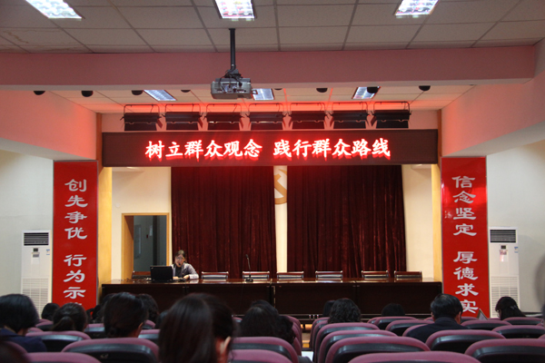 按照黨的群眾路線教育實(shí)踐活動(dòng)的總體安排,推動(dòng)教育實(shí)踐活動(dòng)深入開展,我校于4月22日下午,在階梯教室開展了黨組書記講黨課的活動(dòng)。于文坤書記主講了以《樹立群眾意識(shí) 踐行群眾路線》為題的專題內(nèi)容。