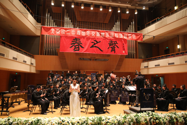 2014年3月27日晚,在北京音樂廳,我校成功舉辦了第二屆“北京市鐵路第二中學(xué)青少年交響管樂團——‘春之聲’專場音樂會”。出席此次活動的市區(qū)領(lǐng)導(dǎo)有西城區(qū)教委張燕軍副主任,西城區(qū)教委校外教育辦公室科長李燦宇,西城區(qū)中教科王紅科長,來賓有西城區(qū)部分兄弟學(xué)校的領(lǐng)導(dǎo)老師、我校退休領(lǐng)導(dǎo)、管樂團的指導(dǎo)教官等。
