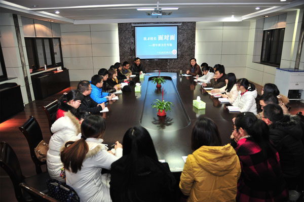 為培養(yǎng)一支敬業(yè)愛(ài)崗、盡職盡責(zé)的青年班主任隊(duì)伍,提高青年班主任教師素質(zhì),更加合理有效的管理班級(jí)事務(wù),以及應(yīng)對(duì)班級(jí)日常管理中出現(xiàn)的棘手問(wèn)題,以適應(yīng)全面素質(zhì)教育的需要,政教處于2013年12月17日晚七點(diǎn)在景行樓二樓會(huì)議室組織召開(kāi)了青年班主任工作培訓(xùn)會(huì),參加此次會(huì)議的人員有高一、二、三年級(jí)35周歲以下的年輕班主任。此次培訓(xùn)會(huì)也是“我與校長(zhǎng)面對(duì)面”系列活動(dòng)之一,會(huì)上季仲平校長(zhǎng)向大家分享了多年來(lái)的班主任工作經(jīng)驗(yàn),對(duì)青年班主任提出了希望。