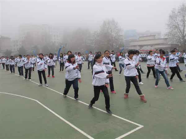 為了推進我校陽光體育迅速蓬勃發(fā)展,增強學生體質,展現新時期青年學生的風采,創(chuàng)建文明和諧校園,豐富校園文化生活,提高班級集體意識。同時,也為了進一步普及第二套全國中學生廣播體操(時代在召喚)。2013年11月29日上午八點整,在莊嚴的國歌聲中,貴州省務川中學“體育活動月”之太極拳、廣播體操比賽活動隆重舉行。會議由學校副校長覃智鋒同志主持,裁判員張艷明老師宣讀比賽規(guī)則,田維貴校長宣布“體育活動月”之太極拳、廣播體操比賽正式開始。