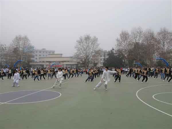 上午8點整,高三年級太極拳比賽開始,18個班級,比賽持續(xù)了兩個多小時。當每個太極拳參賽隊伍比賽結束后,張艷明老師帶領全體參賽同學在操場上隨著太極拳的音樂一起舞動起來。