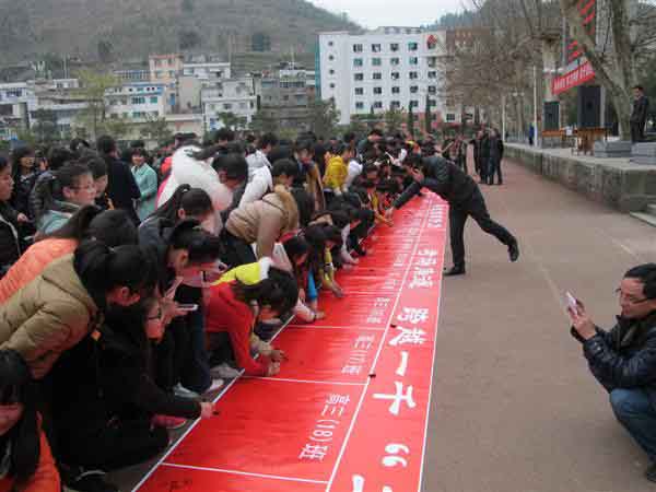 接著,高三年級(jí)全體同學(xué)以班級(jí)為單位組成方陣,滿懷希望和信心在體育場(chǎng)跑道上大聲宣誓班級(jí)口號(hào),并在高三年級(jí)的展板上簽上自己的名字。