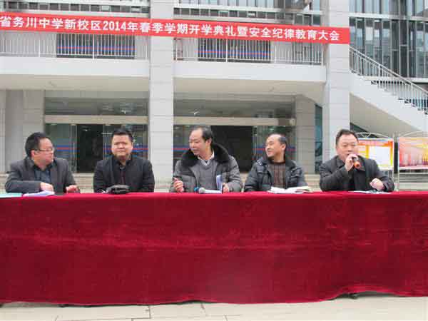 會(huì)議由學(xué)校副校長覃剛同志主持,覃智鋒副校長做新學(xué)期的工作報(bào)告,他風(fēng)趣幽默的語言,生動(dòng)而具體的例子向大家講述著安全方面的工作,接著學(xué)校黨委書記副校長申永強(qiáng)同志宣布2013—2014年秋季學(xué)期優(yōu)秀學(xué)生和優(yōu)秀班團(tuán)干學(xué)生名單,并予以表彰。之后由學(xué)校校長田維貴同志代表學(xué)校向全校師生做了熱情洋溢的講話,他說:“步入新學(xué)期,展現(xiàn)新面貌,今年是馬年,希望每一位師生具有龍馬精神,遇到困難永不倒!辈(duì)全校師生提出一些要求和希望!皩W(xué)高為師,身正為范”,教師在學(xué)生面前就要起到良好的模范帶頭作用,時(shí)時(shí)刻刻要以教師身份樹立榜樣。樹立遠(yuǎn)大的教育理想,鞠躬盡瘁,樹立終生從教思想,樹立終生學(xué)習(xí)的理念,樹立創(chuàng)新意識(shí)的理念,樹立嚴(yán)謹(jǐn)治學(xué)的理想,樹立教學(xué)團(tuán)隊(duì)精神,樹立教學(xué)科研的意識(shí)......