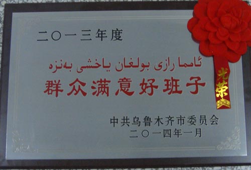 群眾滿意的好班子評比市烏魯木齊市委為推動領(lǐng)導(dǎo)班子建設(shè)而推行的一項(xiàng)重要舉措,我校領(lǐng)導(dǎo)班子及全體教職工在今后的工作中,會珍惜榮譽(yù),再接再厲,為把學(xué)校建設(shè)成規(guī)范化、信息化、現(xiàn)代化的讓群眾滿意的示范校而努力奮斗。