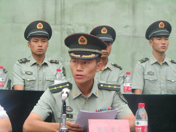 接著擔(dān)負(fù)本次軍訓(xùn)工作的駐新某部領(lǐng)導(dǎo)和學(xué)生代表分別作了發(fā)言。部隊(duì)首長(zhǎng)對(duì)各軍訓(xùn)教官提出了嚴(yán)格要求,他要求教官們遵紀(jì)守時(shí),盡職盡責(zé),服從命令,聽(tīng)從指揮,配合學(xué)校高質(zhì)量、高效率地完成今年的軍訓(xùn)工作。最后部隊(duì)教官還為同學(xué)們表演了軍體操,開幕式在熱烈的掌聲中圓滿結(jié)束。