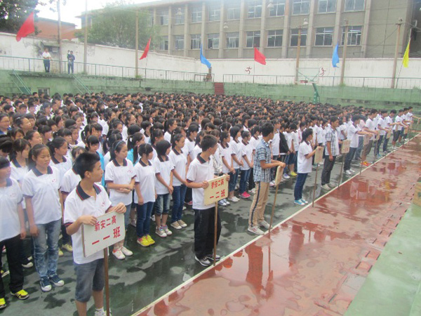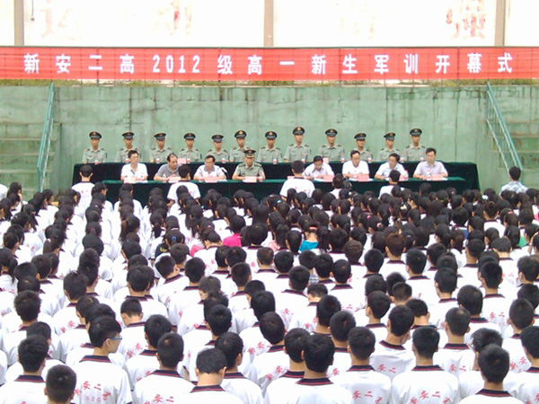 2012年9月2日上午8點(diǎn),新安二高在老城燈光球場(chǎng)舉行軍訓(xùn)開幕式,標(biāo)志著2012級(jí)高一新生軍訓(xùn)活動(dòng)正式拉開了帷幕。