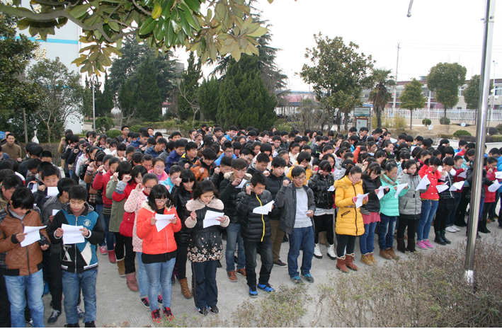 在距2014年中考倒計(jì)時(shí)一百天之際,我校隆重舉行中考百日誓師動(dòng)員大會(huì)。湯慶彪副校長(zhǎng)主持誓師大會(huì),教師代表、學(xué)生代表相繼講話;顒(dòng)中,周菊芳老師帶領(lǐng)同學(xué)們的宣誓把氣氛帶向了高潮。朱愛(ài)國(guó)校長(zhǎng)發(fā)表了熱情洋溢的誓師動(dòng)員講話,他要求全體九年級(jí)師生:再搏一百天,用汗水哺育不凡;再搏一百天,用智慧豐富內(nèi)涵;再搏一百天,憑激情織起夢(mèng)想;再搏一百天,靠實(shí)力鑄就輝煌!