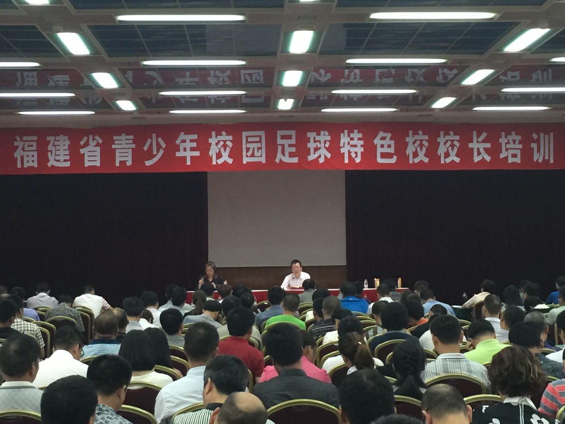 5月24至28日,福建省青少年校園足球特色校校長培訓班在福州舉行,共舉辦了兩期。全省各設區(qū)市、縣(區(qū)、市)校長、主任近800人參加培訓,省委教育工委副書記劉劍津出席培訓班并對省青少年校園足球工作進行部暑。我校副校長時建軍代表學校參加培訓。