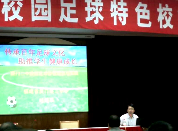 在培訓班上,時建軍副校長作了題為《傳承百年足球文化,助推學生健康成長 》的經驗交流,向與會者介紹了我校校園足球的價值追求與實踐,并闡釋了足球對廈門二中來說是歷史,是文化,更是傳承。