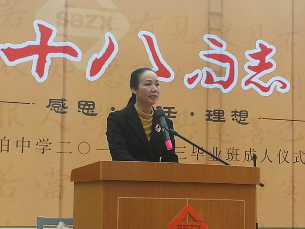 魏宏智同學(xué)家長代表高三全體學(xué)生家長代表發(fā)言,她在祝福學(xué)生十八歲成人之時,希望全體學(xué)生要感謝自己父母的養(yǎng)育之恩、感謝師恩、更要感謝現(xiàn)在和諧美好的年代,她還希望同學(xué)們要勇于承擔(dān)、堅守誠信、回報社會。
