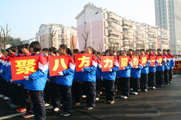 經(jīng)過“迎朝霞、送晚霞”長跑鍛煉的第一中學(xué)師生,在本次活動中顯得尤其陽光自信!熬郯朔搅α浚k第一中學(xué)”的標(biāo)語在陽光的照耀下更加鮮明奪目。同學(xué)們每到一處,就有市民連連豎起拇指大加贊賞。
