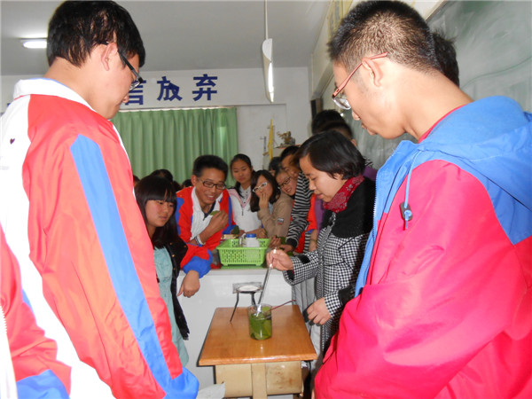 團(tuán)支書(shū)武陵溪同學(xué)拉來(lái)了班主任劉老師來(lái)和大家一起做實(shí)驗(yàn)!劉老師是教政治的,這次班上的化學(xué)學(xué)霸魏宇衡同學(xué)設(shè)計(jì)的噴泉實(shí)驗(yàn)要讓劉老師動(dòng)手嘗試。
