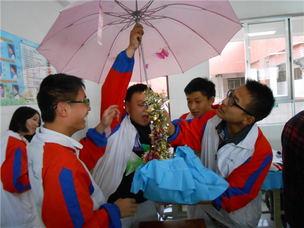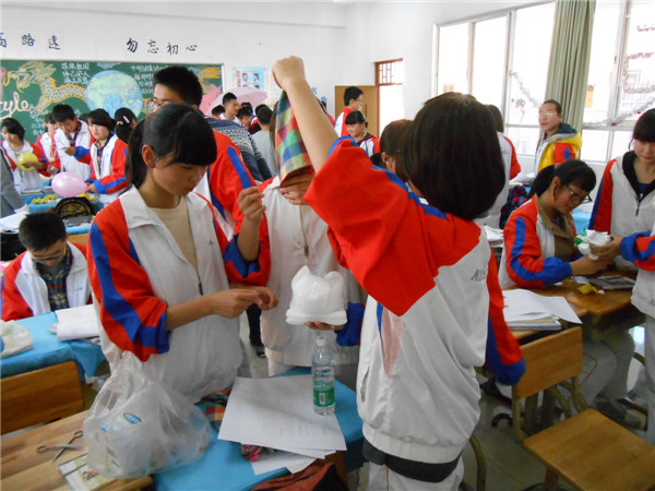 在期末考前夕做一個(gè)物理科技設(shè)計(jì),成績(jī)一向優(yōu)秀的團(tuán)支書(shū)陳禧禪同學(xué)覺(jué)得是非常好的緩解壓力方式,可以考驗(yàn)大家能否靈活運(yùn)用知識(shí)。為了使自己小組的雞蛋從五樓自由落體不摔碎,全班同學(xué)都絞盡腦汁,所有人都盡其所能提出自己的想法,事先嘗試了許多種方案。