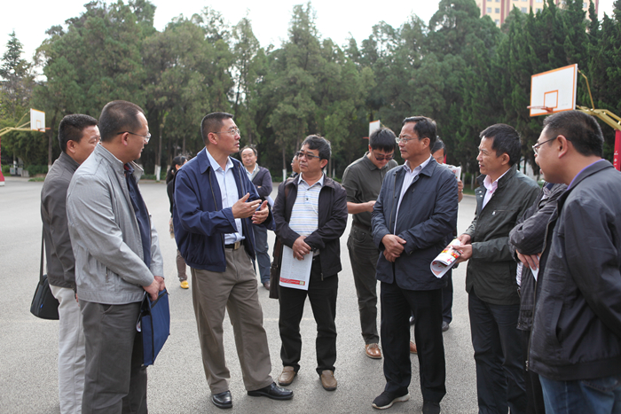 趙燦東校長(zhǎng)向普洱市副市長(zhǎng)童書瑋一行介紹我校校園規(guī)劃