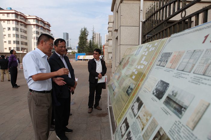 趙燦東校長(zhǎng)向普洱市副市長(zhǎng)童書瑋介紹我校校史