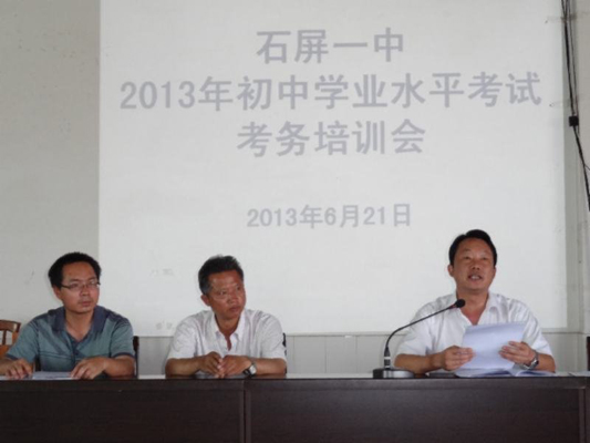 隨著初中學(xué)業(yè)水平考試的來臨,我校部分教師被抽調(diào)為初中學(xué)業(yè)水平考試監(jiān)控教師。2013年6月21日,我校組織監(jiān)考教師進(jìn)行初中學(xué)業(yè)水平考試培訓(xùn)會(huì),對(duì)考試中監(jiān)考教師的應(yīng)注意事項(xiàng)與要求作了認(rèn)真強(qiáng)調(diào)。