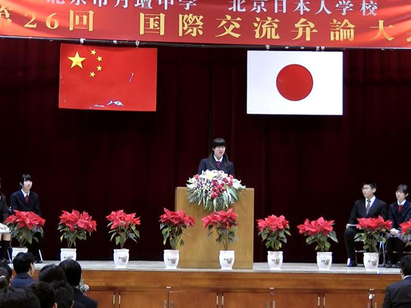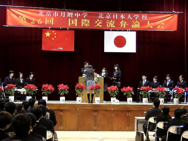 2013年11月30日,第26屆國際交流演講大會(huì)在北京日本人學(xué)校隆重舉行,北京月壇中學(xué)初三年級的部分師生由張文生校長帶隊(duì)參加了這次大會(huì)。北京國際交流演講大會(huì)是由北京月壇中學(xué)與北京日本人學(xué)校聯(lián)合舉辦的兩校傳統(tǒng)聯(lián)宜活動(dòng),每年輪流舉行,目的在于促進(jìn)兩校之間的友好合作、共同發(fā)展,增進(jìn)兩國學(xué)生之間理解和友誼。
