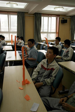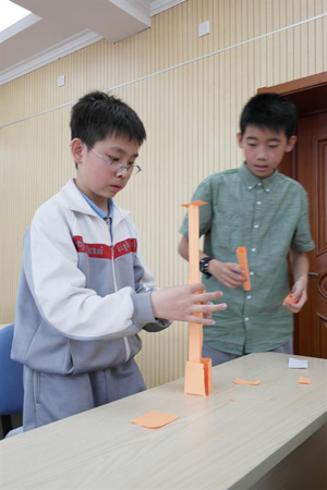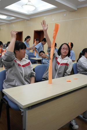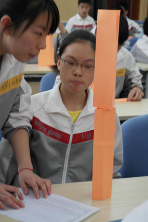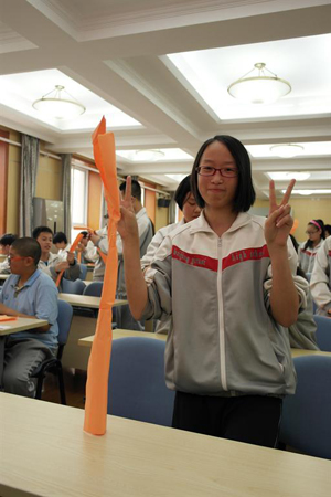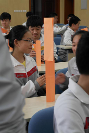本次競賽的任務(wù)是在10分鐘之內(nèi),以兩個人為一個小組,利用現(xiàn)場提供的兩張A4紙,搭建一個紙結(jié)構(gòu)。要求完成的結(jié)構(gòu)要盡可能高的豎立在桌面上,結(jié)構(gòu)只能與桌面接觸,不得再接觸其它任何東西(包括人體)。制作時間到,裁判逐個依次測量結(jié)構(gòu)的高度。結(jié)構(gòu)的高度為結(jié)構(gòu)頂端到桌面的垂直距離,若結(jié)構(gòu)高度一致,以用時最短者為優(yōu)勝。
