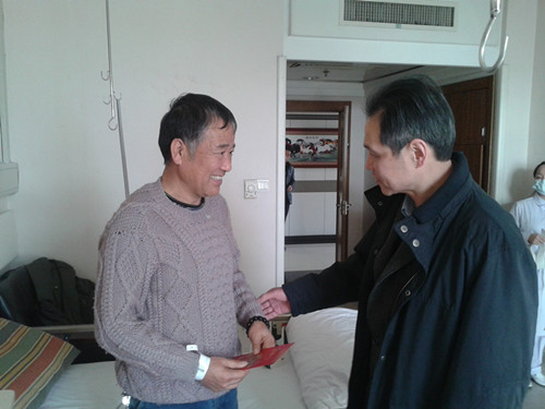 2014年元月20日下午,杭州市教育局紀(jì)工委朱利民書(shū)記、組織處孫葉方副處長(zhǎng)在校黨總支書(shū)記邱月靈陪同下,到浙醫(yī)一院看望慰問(wèn)楊光賢老師。