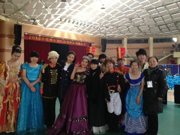 第二屆杭州市高中學(xué)生英語戲劇大賽于2013年12月25日在綠城體育館舉行。本次活動(dòng)的主題是“戲劇之夢,點(diǎn)亮人生”(Dramatized Dreams Enlightened Lives)。來自杭城的16所中學(xué)派出代表隊(duì)參加了比賽。最終我校張利萍老師指導(dǎo)的“窈窕淑女”榮獲一等獎(jiǎng),實(shí)現(xiàn)了我校新的超越! “窈窕淑女”表演團(tuán)隊(duì)主要來自于張利萍老師的選修課“英美文學(xué)與戲劇表演”學(xué)員。這是一個(gè)團(tuán)結(jié)協(xié)作的團(tuán)隊(duì),讓我們記住參與表演的13位同學(xué)的名字:姚含紫、朱瑀瀟、張嘉晨、陳璇、張柏銘、馬俊杰、楊方璇、陸雋、馮瀾、馮瀾、姚虹姣、孫施妍、李詩悅,另外還要感謝劇務(wù)沈奕凡,服裝孟雨虹,以及選修課的其他同學(xué)的支持。更要感謝參與舞臺(tái)化妝和表演指導(dǎo)的黃丹和趙春燕老師的大力支持!