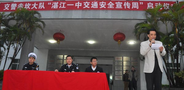 湛江一中開學(xué)伊始即在全校師生當(dāng)中加大交通安全教育力度,制定《湛江一中交通安全宣傳教育工作實(shí)施方案》,設(shè)置校園交通安全宣傳專欄,懸掛交通安全宣傳橫幅,發(fā)放《致學(xué)生家長(zhǎng)一封信》等,開展一系列專題活動(dòng),使交通安全知識(shí)深入人心,并且轉(zhuǎn)化為師生文明、安全出行的自覺行動(dòng)。
