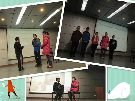 每一個表演者都流利地表演了自己的角色,而這一個個因為書上的練習題而險些失去趣味的故事也因為同學們的精彩的演繹而變得更為絢爛多彩。也許會有人疑惑,是什么讓杭外人與眾不同,我想,也許我會回答,是一個個精彩鏡頭之外的汗水,是一個詞一個詞仔細推敲的堅持,是一個個道具與燈光的精心準備,而這一切又恰好天衣無縫地結(jié)合。所以,一般地,在活動面前能表現(xiàn)出這樣出色的素質(zhì)與能力的同學,我們把他們稱為,杭外人。