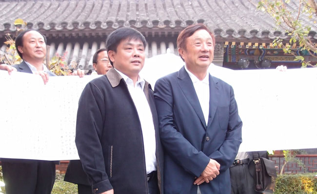 2011年10月任正非在北京接見“貴州教育考察團”時與胡立軍校長合影