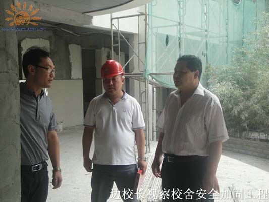 8月11日上午,我校邊團(tuán)結(jié)校長親臨校舍安全加固工程施工現(xiàn)場,視察工程進(jìn)展情況并詳細(xì)詢問了后期施工具體安排。沙瑞龍副校長、總務(wù)處陳宏社副主任、王中仁副主任陪同。