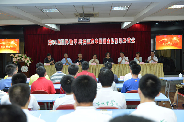 開營式上,我校校長陳軍致歡迎辭,對各位同學、領(lǐng)導和嘉賓的到來表示熱烈的歡迎,并對大家的支持和關(guān)心表示衷心的感謝。隨后,熊斌教授介紹了第54屆國際數(shù)學奧林匹克競賽培訓工作情況:國家隊隊員是經(jīng)過去年十月的全國高中數(shù)學聯(lián)賽,選拔出300多人參加奧數(shù)冬令營,再選拔60多人進入集訓隊,最終選拔出6人組成國家隊,將于7月出征哥倫比亞。接著,國家隊隊員、上海市格致中學顧超同學代表六名正式隊員和19名旁聽生發(fā)言,表示了為祖國爭光的決心。