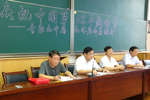 9月10日下午,值此第28個教師節(jié)之際,合肥九中在一樓大階梯教室召開了離退休老同志慶祝教師節(jié)茶話會。學(xué)校黨總支書記、校長陳明華、副校長周祖保、副校長毛曉斌和離退協(xié)主任陳益勝出席了會議。