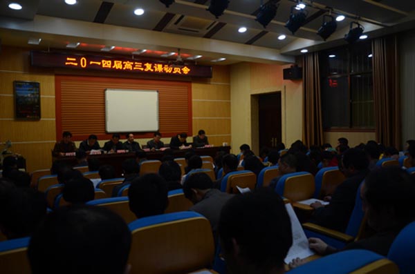 2013年11月7日晚,我校在臺(tái)階教室舉行了2014屆高三復(fù)課動(dòng)員會(huì)。中共鎮(zhèn)安縣委常委、宣傳部長(zhǎng)陳正斌,鎮(zhèn)安縣人民政府副縣長(zhǎng)劉文革,鎮(zhèn)安縣教育體育局局長(zhǎng)毛濃權(quán)、副局長(zhǎng)司武、普教股負(fù)責(zé)人李德學(xué)等領(lǐng)導(dǎo)出席大會(huì),我校校長(zhǎng)戴邦毅,黨總支書(shū)記王忠毅,副校長(zhǎng)龍超奎、丁仕林、常功濤,工會(huì)主席張照崎,相關(guān)處室負(fù)責(zé)人,以及2014屆高三年級(jí)組全體教師參加大會(huì)。