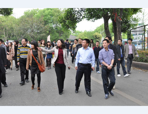 冉崇娟副書記和李鵬副校長等陪同來賓參觀我校校園