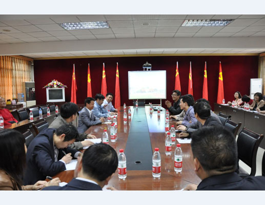 但漢國校長向來賓介紹我校辦學(xué)歷程、辦學(xué)特色等