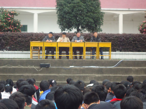 接著高三年級主任王斌老師就高三學(xué)生當(dāng)前的整體狀態(tài)作了詳細的分析。并從學(xué)生今后的行為習(xí)慣、學(xué)習(xí)習(xí)慣和增強安全意識等三方面對全體學(xué)生做了強調(diào)和要求。他要求,百日沖刺階段,全體學(xué)生一定要抓住每天下午的強化訓(xùn)練,抓好每周六下午的綜合強化,認真對待每一次雙周考,利用好每一天的學(xué)習(xí)時光,只有這樣,才能切實提高學(xué)習(xí)成績。