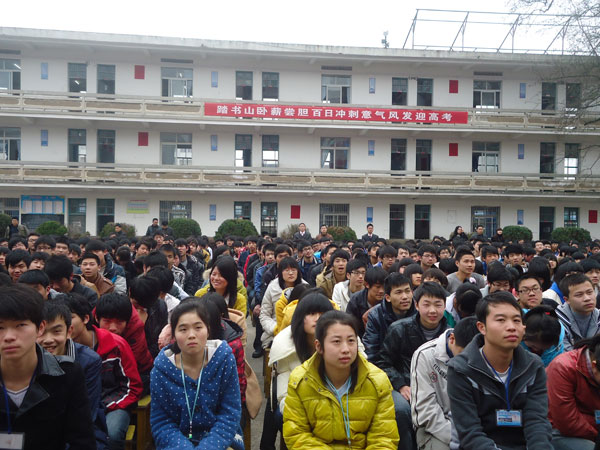 教師代表高三13班班主任黃偉老師、高三2班班主任洪永軍老師先后在大會上發(fā)言。他們的發(fā)言告訴學(xué)生首先要珍惜這一百天;要有“我能成功,我必成功”的信心和斗志;要能從容面對考試當(dāng)中的挫折。他們的發(fā)言也表達了全體高三教師與學(xué)子們一道并肩作戰(zhàn)的決心。