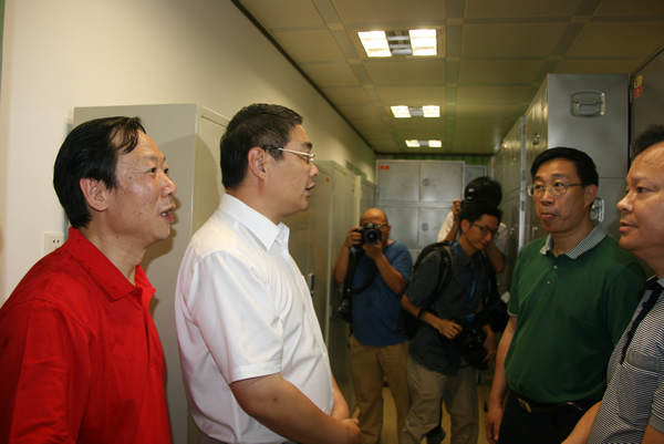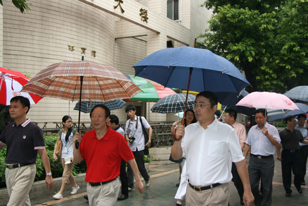 2013年6月5日下午,廣州市副市長(zhǎng)王東同志率市教育局吳強(qiáng)副局長(zhǎng)、招生辦林洽生主任、越秀區(qū)分管教育的相關(guān)領(lǐng)導(dǎo)一行十余人,在我校鄧云洲校長(zhǎng)的陪同下,冒雨對(duì)我校高考考場(chǎng)的各項(xiàng)考前準(zhǔn)備工作、校園環(huán)境、視頻監(jiān)控、高考用電保證等考務(wù)設(shè)施進(jìn)行詳細(xì)的檢查落實(shí)。在我校黃華校區(qū)電房進(jìn)行檢查的過(guò)程中,王東副市長(zhǎng)親自檢驗(yàn)了我校電房備用發(fā)電機(jī)的運(yùn)作情況,并親自簽名確認(rèn)“運(yùn)作正?!薄M醺笔虚L(zhǎng)對(duì)我校高考考場(chǎng)的各項(xiàng)準(zhǔn)備工作予以高度肯定,認(rèn)為我校作為國(guó)家定點(diǎn)考場(chǎng)的相關(guān)工作認(rèn)識(shí)到位、措施到位、責(zé)任到位。