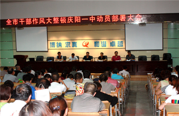 石峰書記主持會議,全體教職工參加了動員部署大會。會上黨總支副書記劉天眷傳達(dá)了市委組織部周普生部長在全市干部作風(fēng)大整頓部署培訓(xùn)會上的講話精神,學(xué)習(xí)了市教育局黨委《干部作風(fēng)大整頓實施方案》,石峰書記宣讀了干部作風(fēng)大整頓《實施方案》及《督查問責(zé)辦法》,對我校開展作風(fēng)大整頓做了具體安排,竇興文校長發(fā)表動員講話,對我校開展好這次大整頓提出了嚴(yán)格要求。