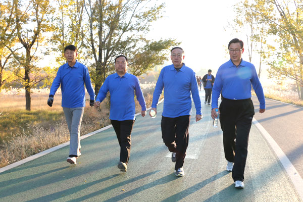 我校黨總支為了提高我校教職員工的身體素質(zhì),提高工作效率,愉悅心情,于2015年10月18日(星期日)上午7:30舉行了賽汗塔拉健身走活動。杜校長,李書記等幾位領(lǐng)導(dǎo)積極帶頭參加,除部分老師有事未參加外,我校大多數(shù)老師參加了此項活動。在積極愉快的氛圍中老師們?nèi)荚?0到90分鐘之內(nèi)走下了約10公里的路程,曹武文和張玉蓮兩位老師最先到達了終點,用時60分鐘。老師們都很高興,覺得以后應(yīng)該多舉辦這種有益身心健康的活動,既能鍛煉身體,又能以更好的心態(tài)在自己的工作崗位上服務(wù)于全校的師生,為把我校教育教學(xué)事業(yè)做得更好做出自己的努力。