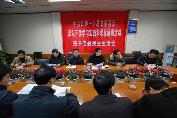 會上以方良元校長為首的仁壽一中校級領(lǐng)導(dǎo)班子,從學(xué)習(xí)實踐發(fā)展觀以來,對照分析、檢查,從存在的問題、整改措施和今后努力方向等三個方面做了分析報告。通過民主生活會對自己做了客觀的個人剖析并進(jìn)行了批評和自我批評。