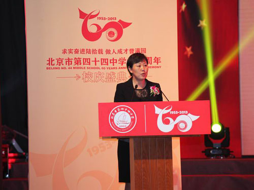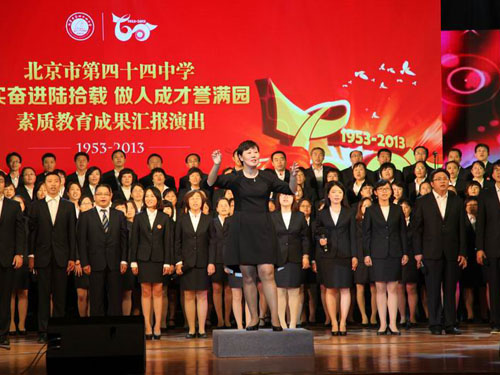 2013年9月30日,北京市第四十四中學(xué)全體師生與共建單位、友好學(xué)校、兄弟學(xué)校同仁、四十四中歷任校長(zhǎng)、書(shū)記、部分離退休教師及老校友代表一起,齊聚紅塔禮堂,舉行了隆重的“求實(shí)奮進(jìn)六十載,做人成才譽(yù)滿園”素質(zhì)教育成果展示活動(dòng)。