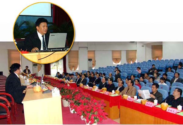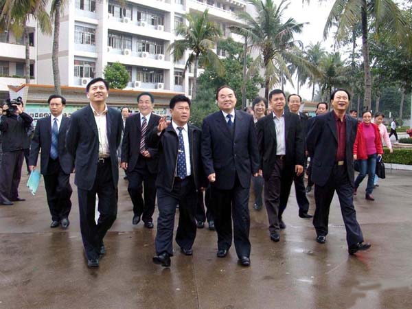 上午9時,周濟(jì)部長一行在海南省人民政府副省長姜斯憲,省教育廳廳長黃國泰,教育廳副廳長石秀慧,省人民政府副秘書長宋攻文,文昌市委書記、市人大常委會主任謝明中,市委副書記、市人民政府市長嚴(yán)正,市人大常委會副主任、我校校長謝晉鋸,市人民政府副市長呂詩強(qiáng)等省市領(lǐng)導(dǎo)的陪同下來到我校,與列隊(duì)歡迎的學(xué)校領(lǐng)導(dǎo)班子成員合影。周濟(jì)部長等領(lǐng)導(dǎo)興致勃勃地視察了設(shè)在張光嶷科學(xué)館的網(wǎng)管中心、名人書畫館和校史展覽館,然后一邊參觀老校區(qū)、新校區(qū)的教育教學(xué)設(shè)施,一邊聽取謝明中書記、謝晉鋸校長介紹省委、省政府大力支持文昌市發(fā)展教育的情況和文昌中學(xué)的辦學(xué)成果。周濟(jì)部長等領(lǐng)導(dǎo)還視察了文昌市青少年活動中心,在活動中心演播廳聽取謝晉鋸校長關(guān)于我校發(fā)展優(yōu)質(zhì)教育,構(gòu)建和諧校園的專題匯報,進(jìn)一步了解了我校在推進(jìn)新課程實(shí)驗(yàn)的過程中辦學(xué)籌資多元化,師資建設(shè)專業(yè)化,課程管理網(wǎng)絡(luò)化,資源共享社會化,辦學(xué)成果特色化等情況。