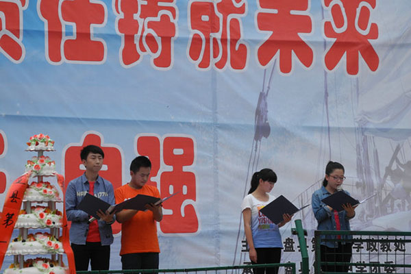5月8日,盤縣一中以一場別開生面的“成人禮”對全校學(xué)生進(jìn)行感恩教育。在足球場上,有兩列長長的隊(duì)伍,一列是學(xué)校高二高三年級的學(xué)生,而另一列則是他們的家長,他們手牽手,領(lǐng)取了成人紀(jì)念章和手冊,并走過了成人門,孩子們還在“十八歲心愿墻”上貼上自己的夢想。