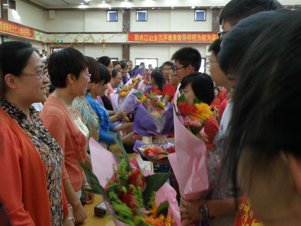 白立杰老師回顧了三年來(lái)師生之間的點(diǎn)點(diǎn)滴滴,希望同學(xué)們?cè)诟呖贾谐林潇o、克服弱點(diǎn),調(diào)整心態(tài),樂(lè)觀自信,去實(shí)現(xiàn)自己的理想,創(chuàng)造生命的輝煌!希望同學(xué)們要堅(jiān)持完善自我,錘煉好學(xué)上進(jìn)的品德,心胸寬廣;希望同學(xué)們今后?;啬感?纯?。